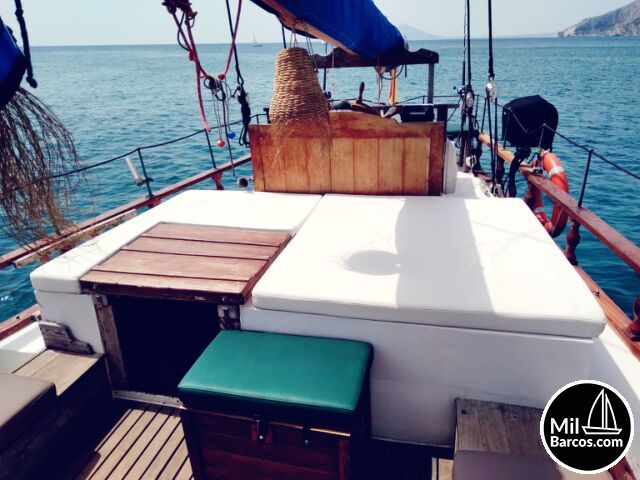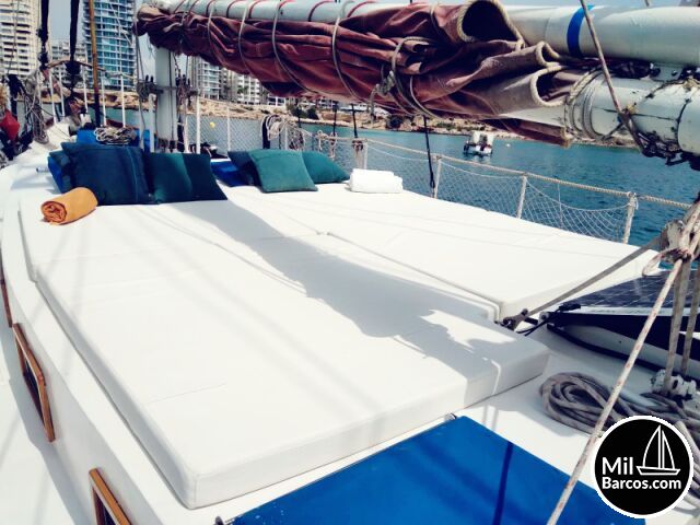 | Équipement, extras, documentation: | Cubierta y maniobra: Molinete de ancla 24V Ancla principal + ancla de respeto Velas Solárium de proa (nuevo) Solárium de popa (nuevo) Plataforma de baño Escalera de baño (nueva instalación) Asientos y mesa de popa (nuevos) Cojines bañera y patronera (nuevos) Barbacoa (nueva) Navegación y seguridad: Plotter Sonda Piloto automático Luces de navegación VHF fijo y portátil Radiobaliza 406 MHz Balsa salvavidas 12 PAX (nueva) Material de seguridad según normativa vigente Timón de emergencia Interior: Salón con mesa 5 literas en proa-salón Mesa de cartas Cocina a gas Nevera 220V Aseo de proa con ducha Orza abatible Camarote de popa: Cama doble de gran tamaño Escritorio Mini aseo / tocador WC Ventanas de popa practicables Motor y sistemas: Motor General Motors 100 CV diésel (6 cilindros en línea) Tanque diario de gasoil Tanques de agua dulce – 250 L Calentador agua caliente Isoterm 40 L (220V) Batería servicios 500 Amps – 24V Transformador 24V / 12V Cargador 24V 70A + Inversor 3000W Victron (nuevo) 3 bombas de sentina generales 2 bombas de sentina sala de máquinas 2 extintores CO₂ (nuevos) |