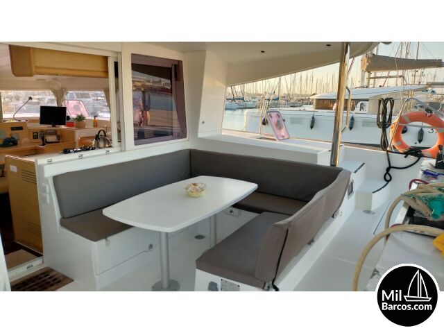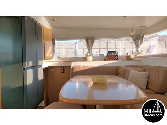 | Équipement, extras, documentation: | Equipamiento de cubierta Bimini, almohadones en asientos de bañera, mesa en bañera, ducha exterior (agua caliente), molinete de ancla eléctrico, escalera de baño. Equipamiento de seguridad: Bombas de achique eléctricas (automáticas) y bombas de achique manual, Extintores (5), Chalecos salvavidas, Aros salvavidas, Material pirotécnico, Arneses de seguridad, Epirb, balsa salvavidas (8 personas – Vto 07/2025) Velas y aparejos: Gennaker (opcional), Genoa enrrollable (year 2019), Vela Mayor (year 2018) Equipamiento de navegación: Anemómetro, Piloto automático, Brújula, Sonda, Plotter GPS en mesa de navegación, Plotter GPS en exterior, Velocímetro, Cartas náuticas, Radio VHF, Ais Equipamiento interior: Agua caliente, Desalinizadora, Generador, 2 Baños manuales y 2 Baños eléctricos. Equipamiento eléctrico: Radio/CD player, TV/DVD, Starlink (Internet), 4 Paneles Solares (Controlador Victron) Equipamiento de cocina: Menaje completo, Utencillos de cocina, Fregadero doble, Nevera bajomesada con congelador, Nevera de doble puerta con frezzer, Anafe a gas, Horno a gas, Botiquín de primeros Auxilios. Equipamiento adicional: Dinghy con motor de 5 hp, Snorkels, Stand up paddle, Equipos de pesca. Mesada exterior con fregadero doble. |