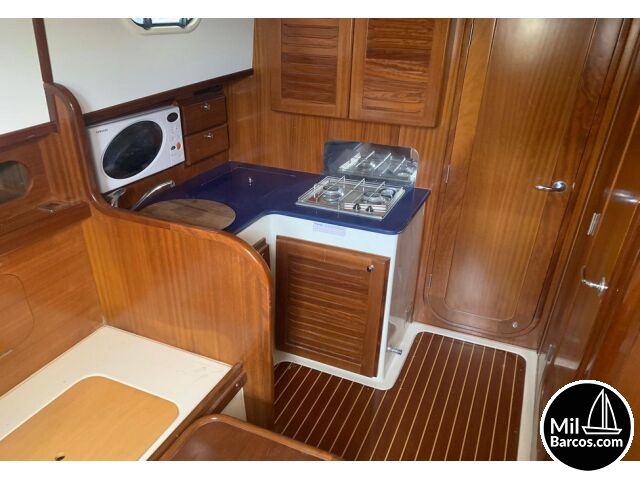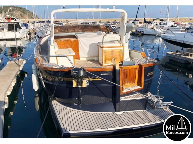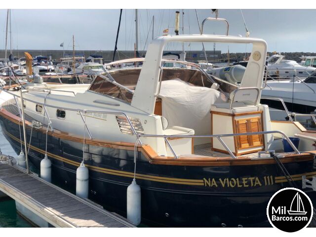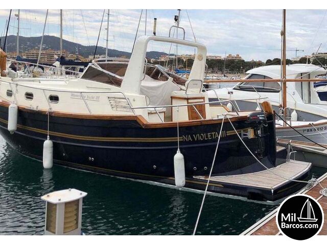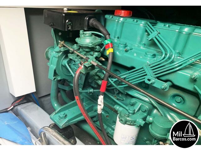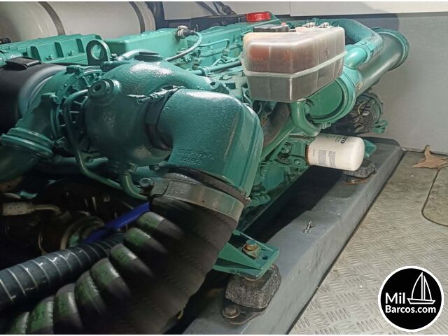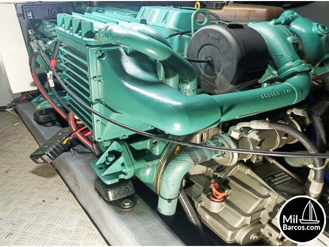 Menorquín Yachts 100, motores Volvo 2 x 193 Hp. Turbo Diesel, eslora y manga 10,50 x 3,70 m., hélice de proa, Emisora VHF, GPS Plotter, sonda, piloto automático, molinete eléctrico, ancla inox., cargador de baterías, toma a puerto de 220 V., estopadas nuevas, instalación eléctrica nueva, dirección hidráulica, ducha en bañera, aseo independiente con depósito de aguas negras, camas para 6 personas, bañera forrada de Teca, nevera eléctrica, escotilla de ventilación, pasillos Walkarround, amplio solárium en proa con colchonetas, limpiaparabrisas eléctricos, botalón a proa, barandas de seguridad, amplia plataforma de baño con puerta de acceso a la bañera, toldo de sol, capacidad de combustible y agua aprox. 660 litros y 320 litros, documentación en regla.
